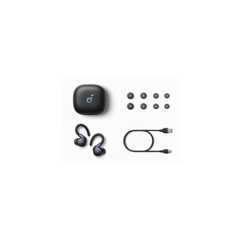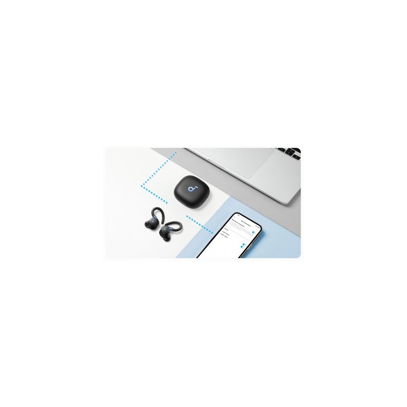 | Specialios funkcijos | 6 mics and an AI algorithm enable crystal clear calls 11mm drivers Multipoint connection Super strong ANC Adjustable ear hooks Battery Life: 12 hours single charge and 48 hours with charging case |