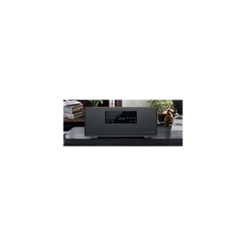 | Funkcijos | Stream music from another Bluetooth compatible device such as Laptop, Tablet or Smartphone Clock function Passive bass Wooden cabinet |