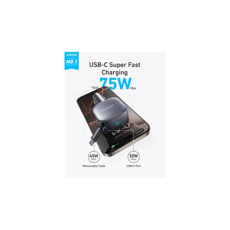 | Gamintojo prekės modelio pavadinimas | Nano Car Charger (75W, USB-C Port, Built-In Retractable USB-C Cable) |
